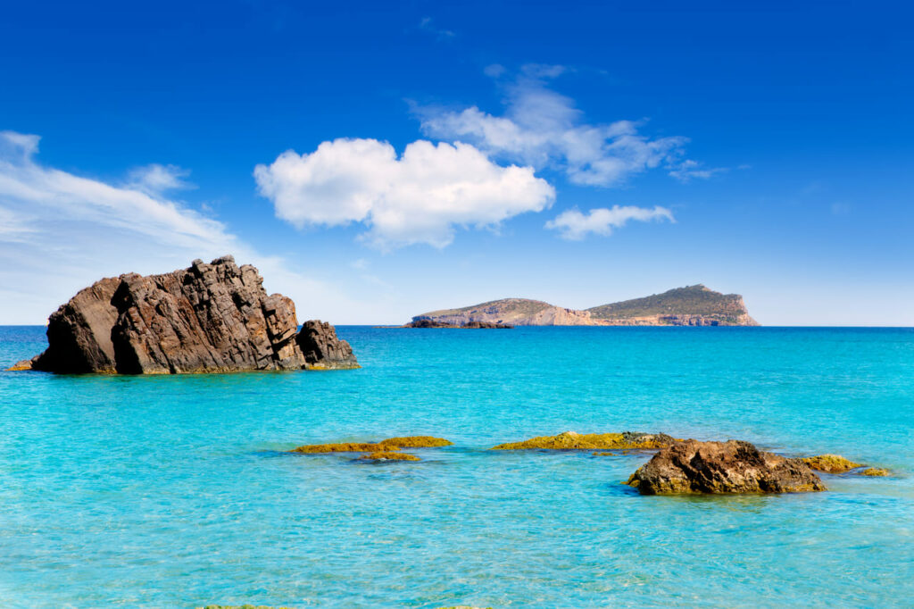Cala Saladeta es una joya escondida de Ibiza, con aguas turquesas y arena blanca. En febrero, ofrece un retiro pacífico, ideal para paseos solitarios y para disfrutar de la serenidad del mar.